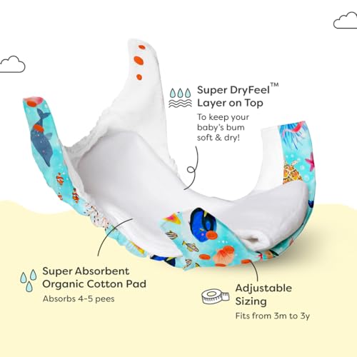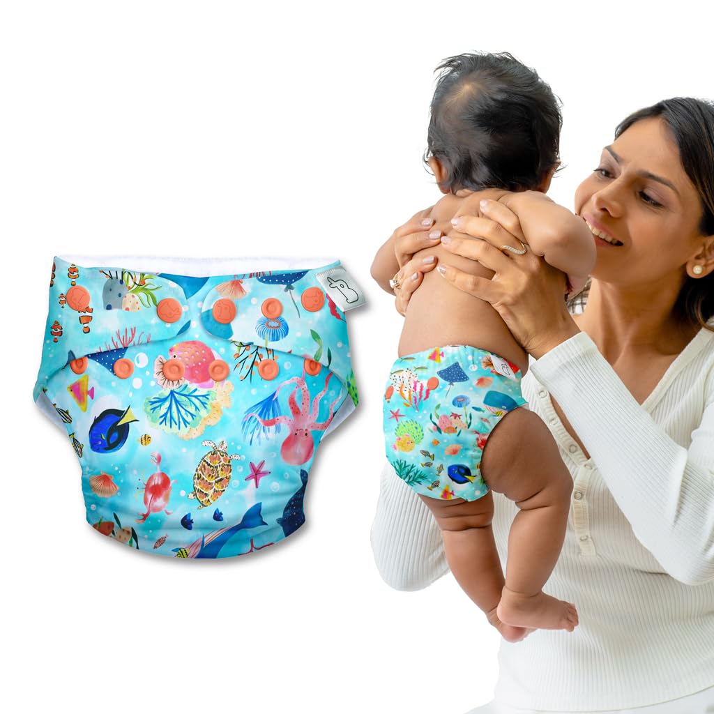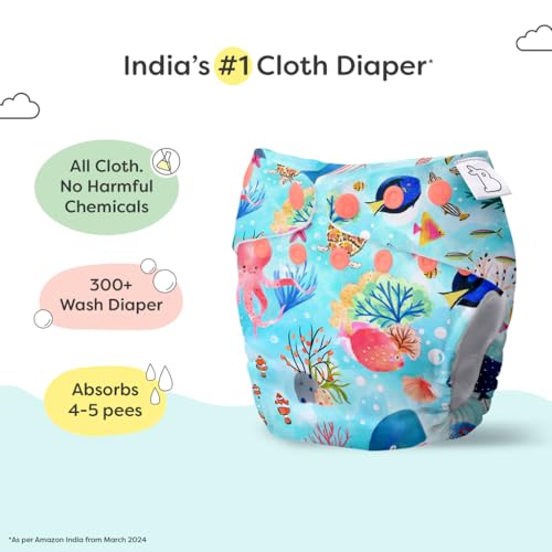 SuperBottoms NEW UNO Freesize Cloth Diaper | Cloth diaper for babies 3M to 3Y | Washable & Reusable cloth diaper | Comes with cloth diaper insert | 1 Diaper and 1 Organic cotton Soaker (Save-Our-Seas)