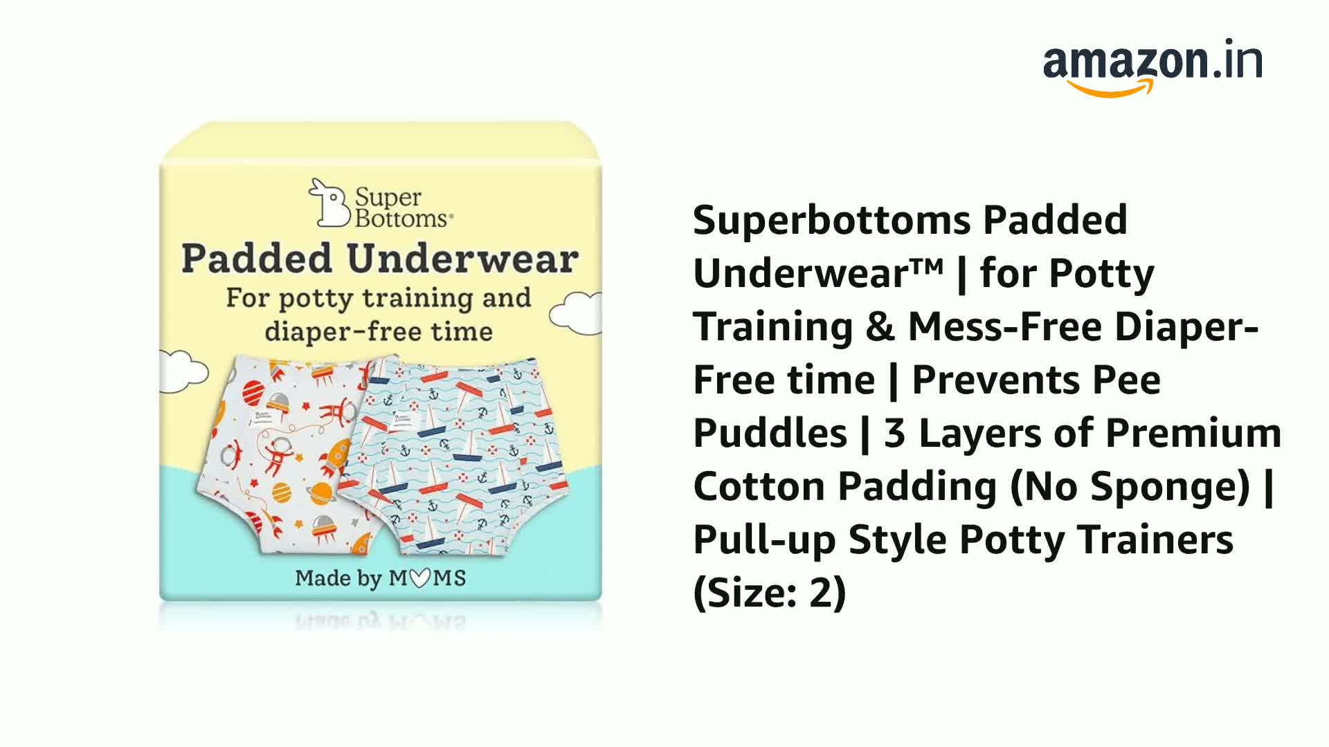 superbottoms Padded Underwear¢ | for Potty Training & Mess-Free Diaper-Free time | Prevents Pee Puddles | 3 Layers of Premium Cotton Padding (No Sponge) | Pull-up Style Potty Trainers (Pack of 2)