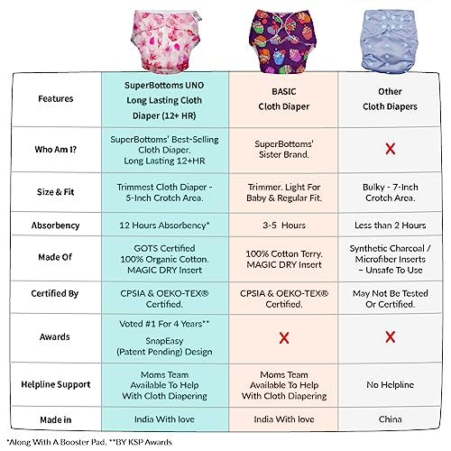 HomeBabyDiaperingCloth Diaperssuperbottoms Stash Builder Pack With 3 Freesize Uno- New Version| Cloth Diapers Combo For Babies From 3M To 3Y |Comes With 3 Fleece Liners, 2 Booster Pads & 1 Very Heavy Wetter Pad, 3 Count