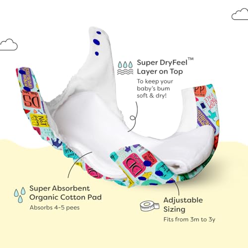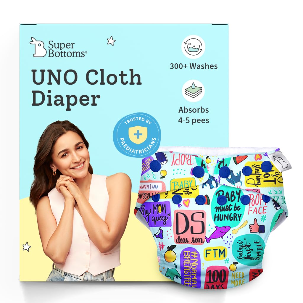 HomeBabyDiaperingCloth DiapersSuperBottoms UNO Freesize Cloth Diaper with Extra Booster | Pack of 2 (1 Waterproof Outer + 1 Organic Cotton Dry Feel Magic) Cloth diaper for babies 0 to 3 years | Washable & Reusable cloth diaper | Comes with cloth diaper inserts |(Mommy Talk)