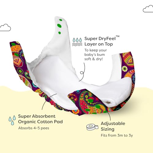 Skin-Friendly Eco-Friendly & Pocket-Friendly: SuperBottoms Freesize UNO Cloth Diaper is made from 100% Organic Cotton Pads which serve as diaper inserts. With its Super DryFeel Layer it keeps your baby's bums dry and helps prevent rashes. Being washable a