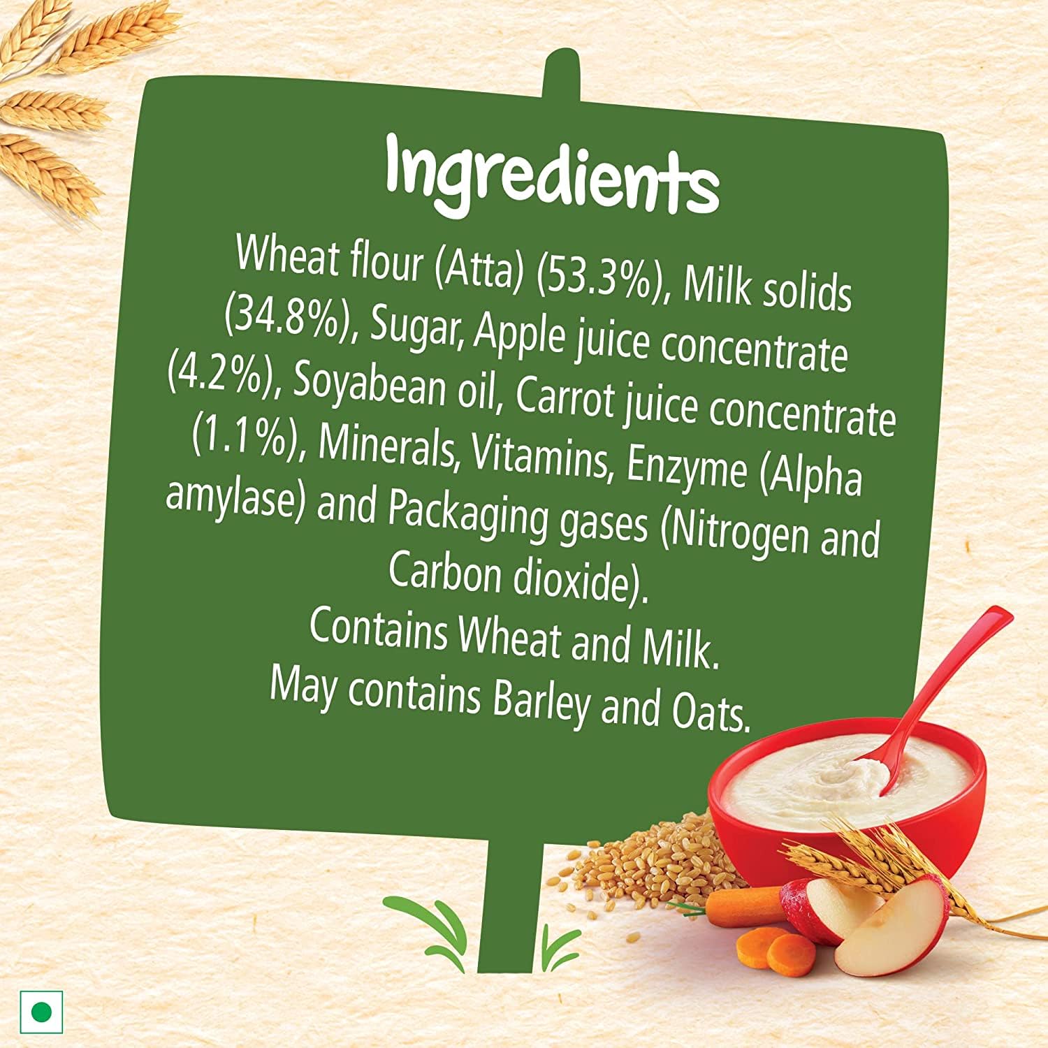 • WHEAT APPLE CARROT: This wheat apple carrot baby food is packed with the goodness of cereal milk fruit & vegetable
