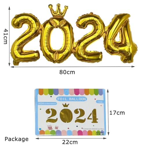 Gold 2024 New Year Balloons Number Balloons Party DecorFeatures: Size: 80 x41cm/32 x 16.1innchMaterial: Aluminum FilmColors: GoldPackage Includes: One 2024 Balloon SetNotice:For manual measurement please allow 1-3cm errorSuitable for New Year's parties anniversaries weddings commercial celebrations or other party decorations adding a happy atmosphere to your event