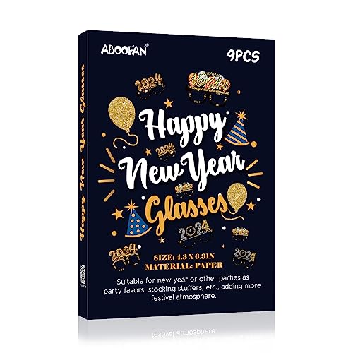Description Our 2024 new year glasses are festive and designed with unique new year themed patterns full of new year party atmosphere. Widely suitable for men and women kids and adults to wear the lovely new year party design makes the eyeglasses more outstanding and eye catching. Perfect photography props! Features- Brand: ABOOFAN.- Color: As shown.- Material: Paper.- Size: 15.00X11.00X15.00cm/ 5.89X4.32X5.89in.- With the new year theme eyeglasses you can liven up this New Year' s Eve party and enjoy the fun and guest' s laughter perfect party favors for fancy dress up.- These new year party eyeglasses are applicable for women and men kids and adults to wear for the new year celebration party light and comfortable.- Our eyeglasses will be nice costume decorations and make eye- catching addition for your outfits and they are also good gift choices for friends and family.- Wearing these eyeglasses will make you eye catching in the crowd with the 2024 new year themed patterns and vivid designs on the glasses.- The glasses can be wonderful choices for occasions such as New Year' s Eve parties carnivals and family gatherings they are good photo props to record moments that are interesting. Package Including 9 x New Year Eyeglasses