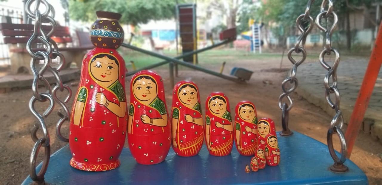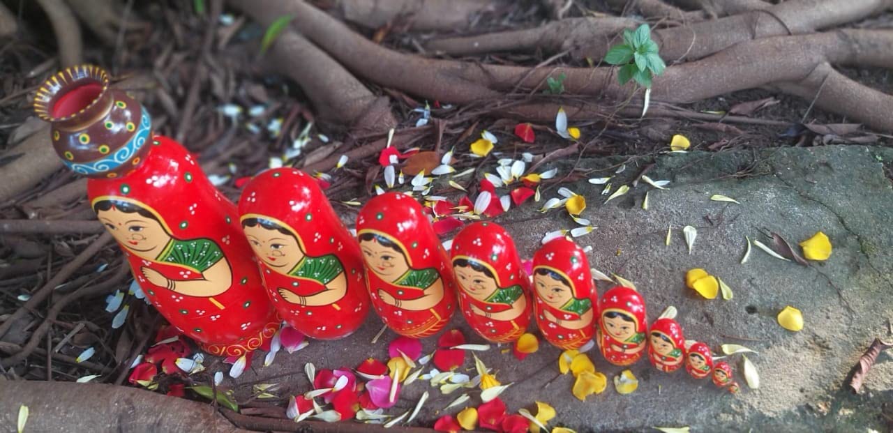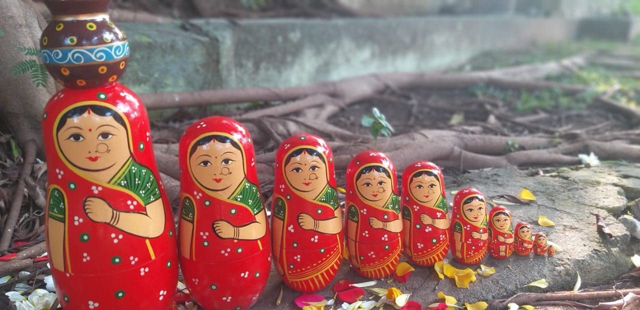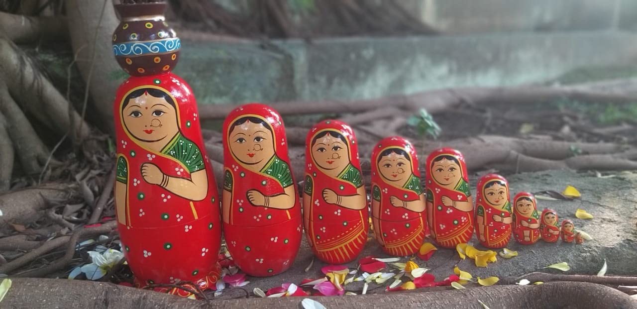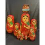 VARANASI WOODEN TOYS Handmade Wooden Stacking Dolls with Pot Red 10pcs Set (12 cm x 8 cm x 27 cm)