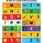 This colorful set of 78 puzzle cards provide children with an excellent way to learn letter and word recognition. The 26 sets of 3 piece match-up puzzles have beautiful illustrations. Simply match the three pieces together to complete the puzzle.Many ways to play ?Ask the kids to identify the objects in the picture cards.Take any letter card and ask the kids to name different things starting with that letter.Spread the letter and picture cards. Ask the kids to match the pictures with their starting alphabet.Take out all the letter cards and shuffle them. Ask the kids to arrange all the letter cards in alphabetical order.Choose a sequence of 4 to 5 letter cards. Ask the kids to identify the letters that precede and follow the sequence.Create a ssequence of 4 to 5 letter cards. Ask the kids to close their eyes. Remove any letter from the sequence. Ask the kids to open their eyes and identify the missing letter.Memory game - Mix all the letter and picture cards and lay them face down. The first player turns any 2 cards. If the letter and picture cards match the player will keep the set and continue playing. If the letter and picture cards do not match keep them face down again. Keep playing till all the cards are matched. The player with the highest number of sets wins.