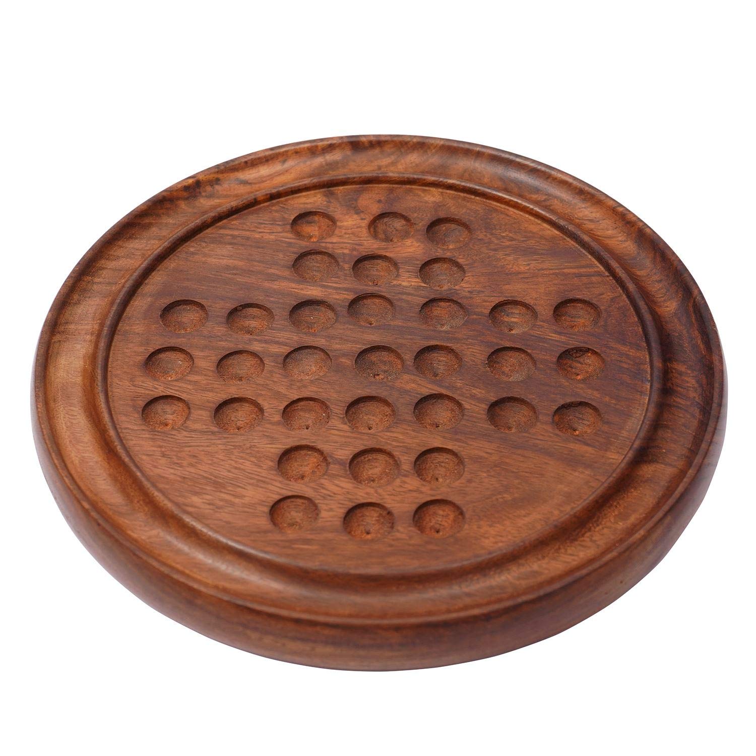 VARANASI WOODEN TOYS Wooden Solitaire Board Game in with Glass Marbles Brain-vita Unique Game 9" - Best Gift for Kids Teens & Adults Made in India (RH_Solitaire_6)