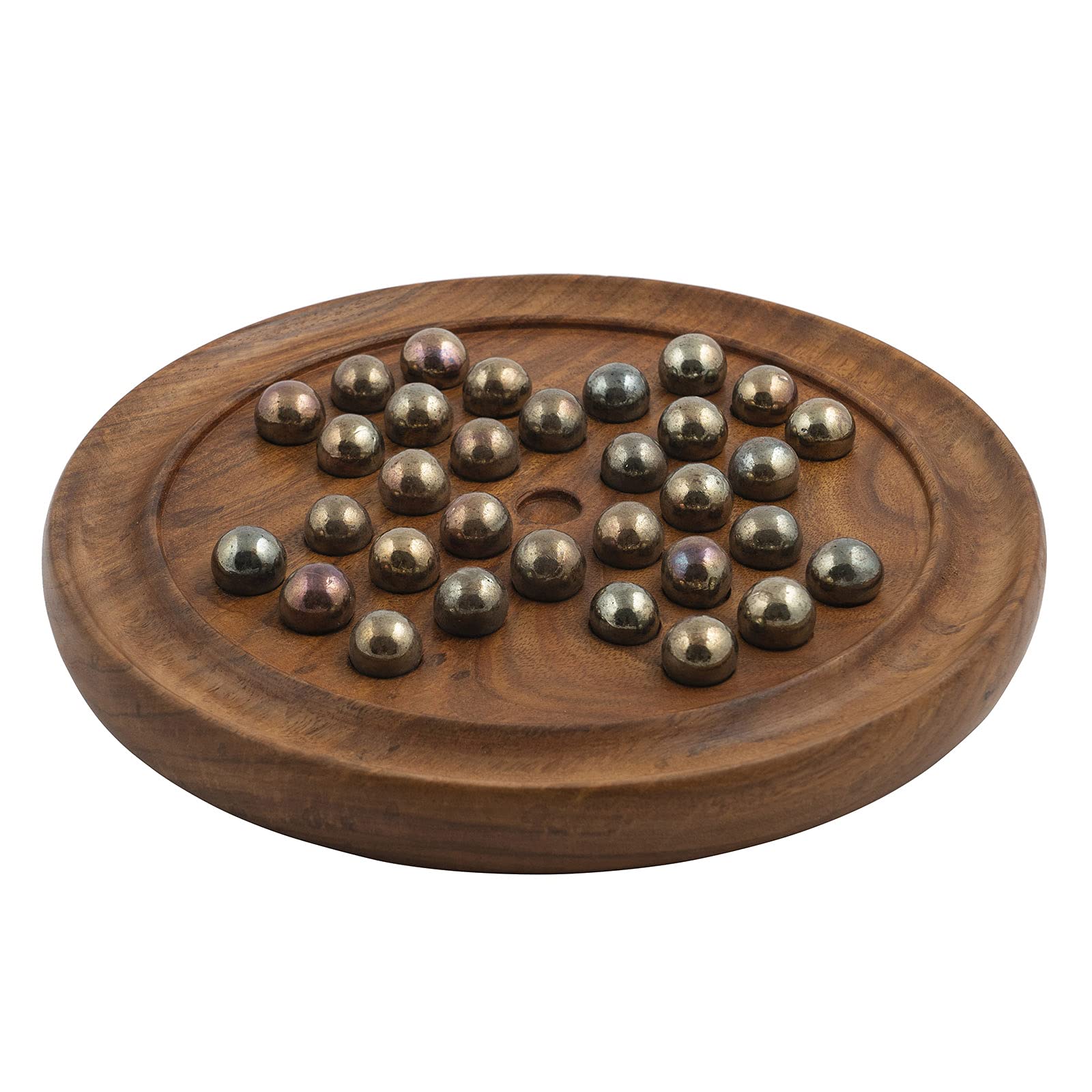 HomeBabyToys & GamesGamesVARANASI WOODEN TOYS Wooden Solitaire Board Game in with Glass Marbles Brain-vita Unique Game 9" - Best Gift for Kids Teens & Adults Made in India (RH_Solitaire_6)