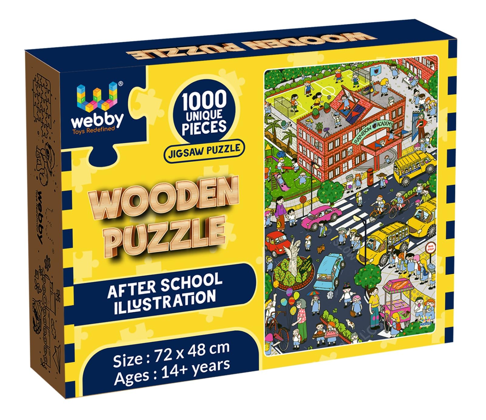 Webby Wooden 1000 Piece Jigsaw Puzzle - After School Illustration - 1000 Pieces Puzzles for Adults and Family, 19 x 28.5