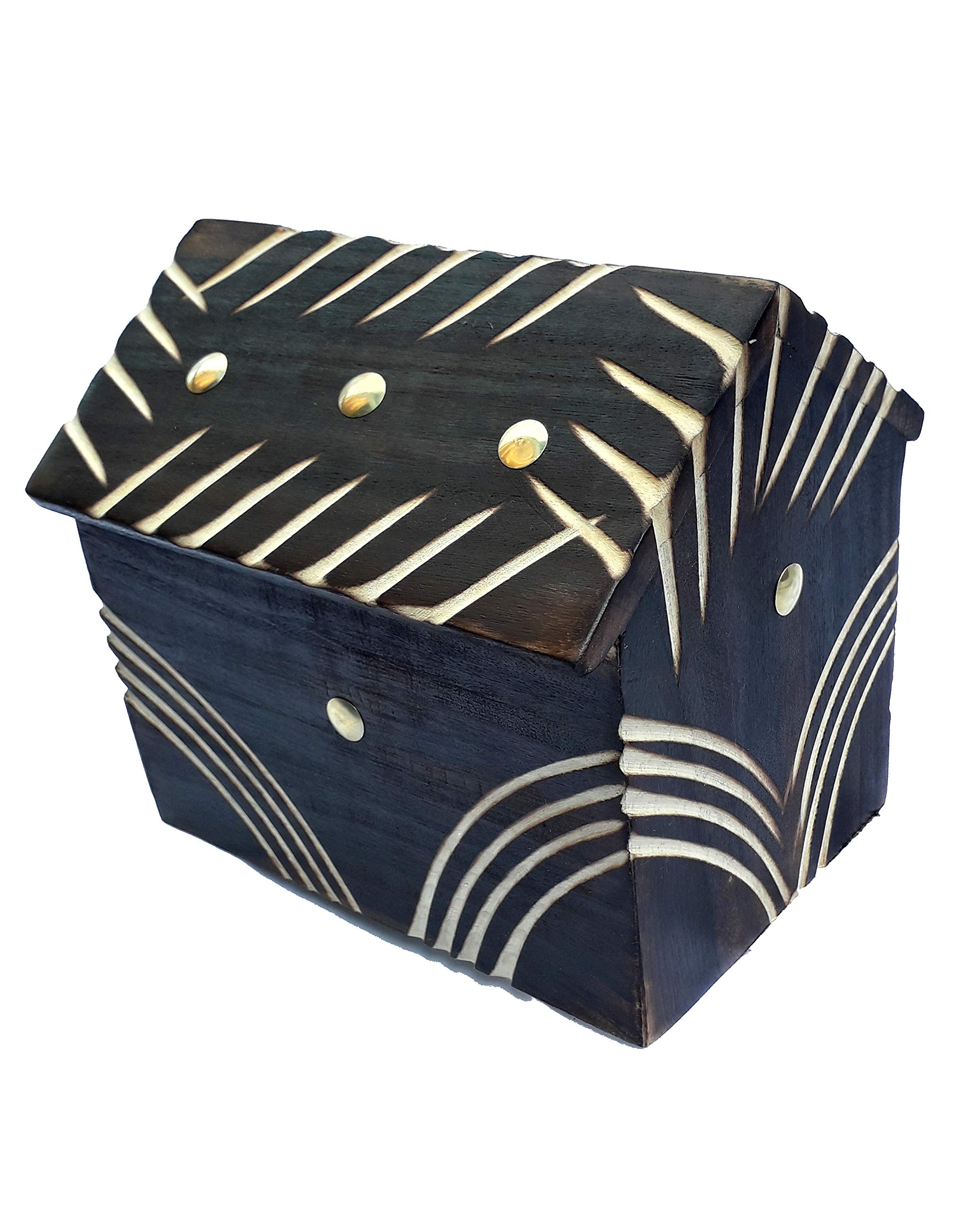 Product Dimensions (L x W x H): 6 inch x 4 inch x 5.5 inch Material: Wood Made by rural artist of India Included Items: 1 Coin Bank with Key Care Instructions: Normal Care Handicrafted Wooden Money Bank Home Style Kids Piggy Coin Box Gifts Made with high durable quality Wood that gives you assurance of stability of item.