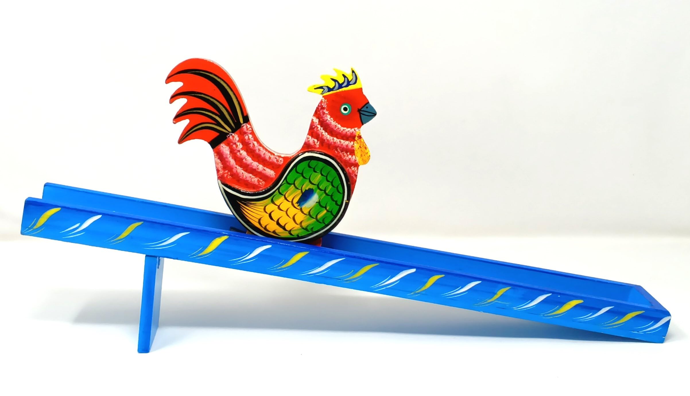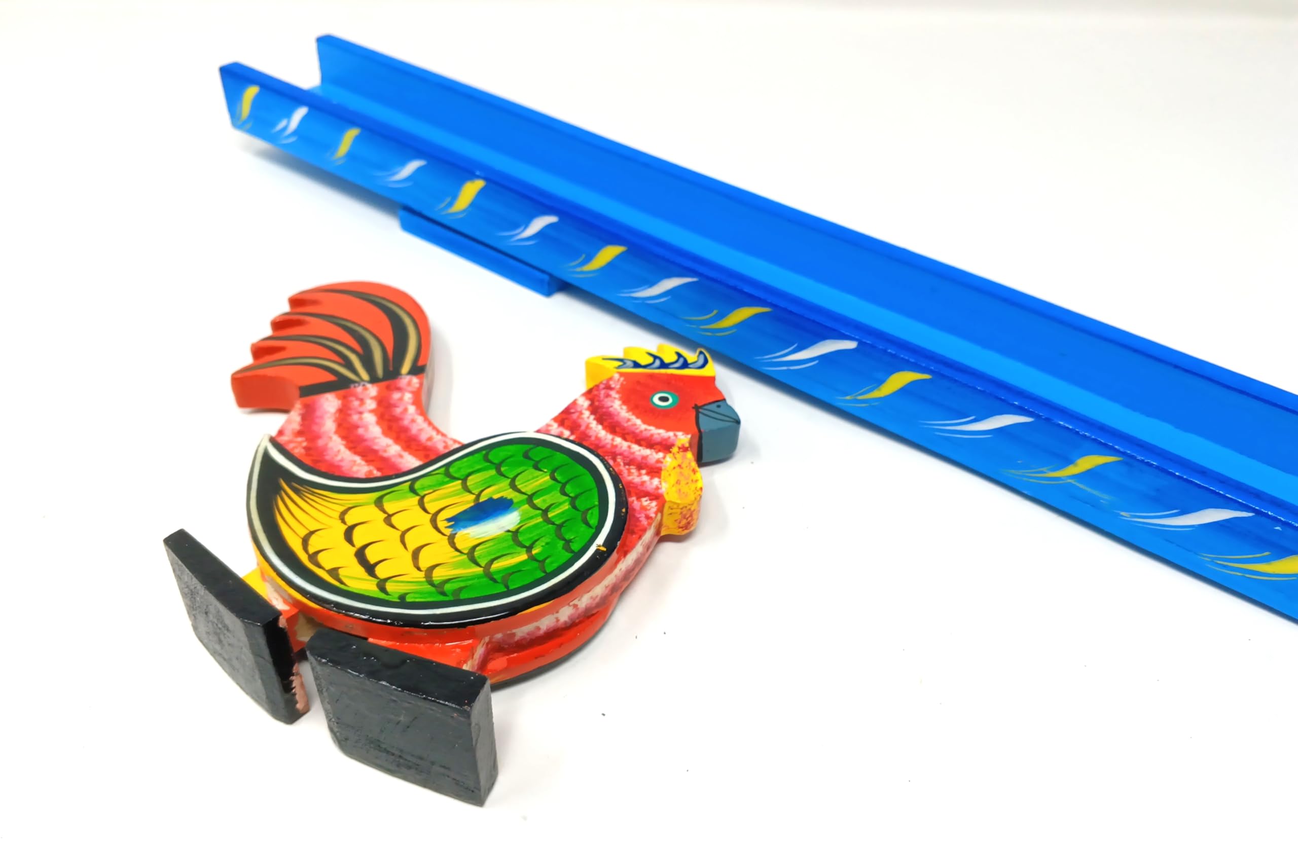 This hen slider toy sides down the slide in a tic tok mannerso kids go and unleash the fun. These wooden toys have been handcrafted by the Artisans of "Varanasi" .This traditional craft is protected as a geographical indication (GI) under the World Trade Organization.It is Made from the Natural Vegetable Coloring Dyes.Non Toxic.Made in India with Love.