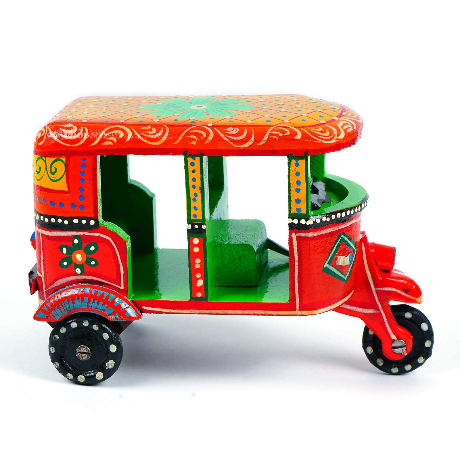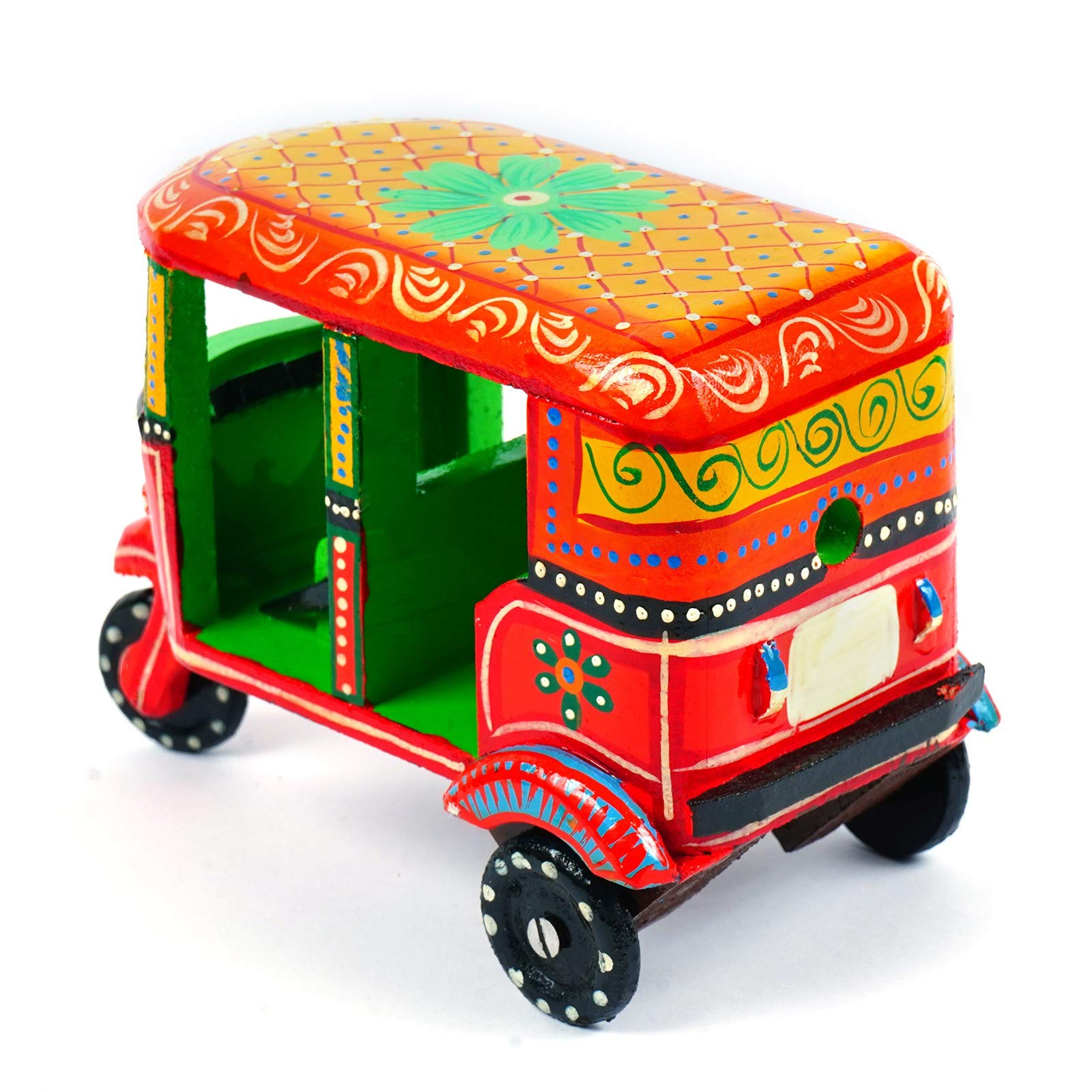 VARANASI WOODEN TOYS India Handmade Colorful Push and Pull Toys Wooden Auto Rickshaw (No Battery Required & Color May Vary)