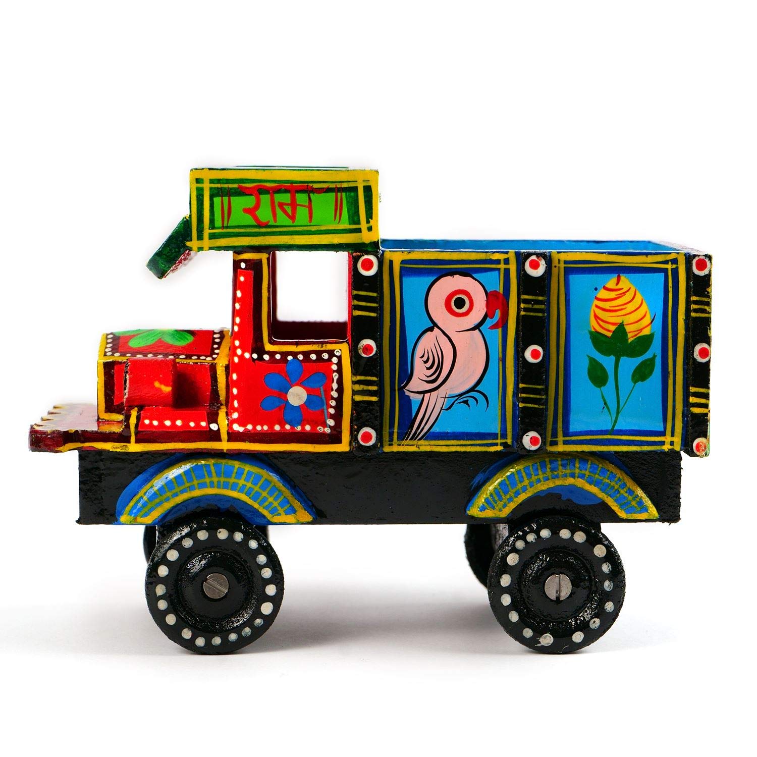 VARANASI WOODEN TOYS Wooden Handmade Multi Color Truck Vehicle for Kids Colorful Push and Pull Toys Color May Vary (H: 6.5 x L: 5 x W: 3.5 Inch)